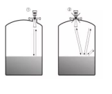 测量有堆料的罐体,选型的时候,应选择万向法兰(可调节方向)的安装雷达液位计。由于倾斜的固定表面会造成回波衰减,甚至丢失信号的问题。所以我们安装的时候通过调整雷达天线垂直对准料面。