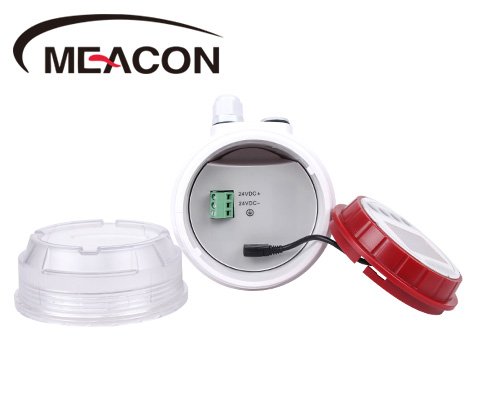 两线制超声波液位计其供电(24vDC)与信号输出(4-20mA)共用一个回路,也就是仅使用两条线即可,不足之处是发射功率相对略微微弱一些。