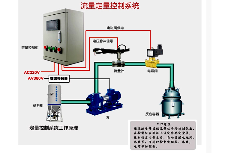 美控定量控制系统由流量积算仪、涡轮流量计、电磁阀等组成,可以通过设备联动,自由设定液体出水量,更精准的实现物料配比,全面提升生产效果。其工作原理是通过流量计提供流量信号给控制仪表,在控制仪表面板上设定需要定量值,达到设定定量之后,自动关闭电磁阀、水泵等。可同时控制电磁阀,水泵,也可单独控制。可以广泛应用在食品、制药、发酵、环保、精细化工等行业。