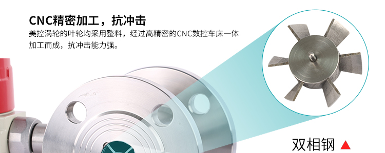 美控涡轮流量计是一种速度式仪表,它具有精度高,重复性好、结构简单、耐高压、测量范围宽、体积小、重量轻、压力损失小、寿命长、操作简单、维修方便等优点,用于封闭管道中测量低粘度、无强腐蚀性、清洁液体的体积流量和累积流量。可广泛应用于石油,化工,冶金,有机液体,无机液,食品,药品等行业。